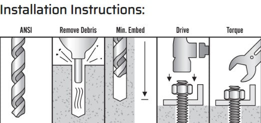 Aerosmith®’s Sure-Wedge® is a heavy duty mechanical anchor with torque-controlled, mechanical expansion, consisting of an anchor body, expansion clip, nut and washer. The anchor body has a tapered mandrel formed on the installed end of the anchor and a threaded section at the opposite end. Suitable base materials include, normal weight concrete and lightweight concrete. The anchors are used to resist static; wind and seismic tension and shear loads in cracked and uncracked normal weight and lightweight concrete having a specific compressive strength of 2500 PSI to 8500 PSI. The anchor is manufactured with a zinc plated carbon steel body and sherardized clip that wraps around the mandrel, rotating freely before installation.